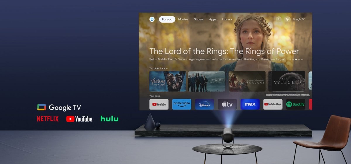 Vnútri zariadenia pulzuje systém Google TV, ktorý vám otvára brány k tisíckam aplikácií vrátane oficiálne licencovaného Netflixu, YouTube, Disney+ či Prime Video. Všetok váš obľúbený obsah je tak dostupný na pár kliknutí priamo v rozhraní projektora. O zvukový zážitok sa stará zabudovaný 6W reproduktor s podporou Dolby Audio, ktorý šíri zvuk v rozsahu 360 stupňov. Freedo tak neslúži len ako projektor, ale po prepnutí do Bluetooth režimu funguje ako plnohodnotný prenosný reproduktor, ktorý ozvučí každú párty či relaxačný večer.