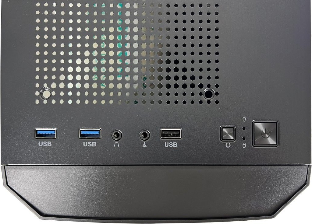 Kompaktná mATX skrinka s výrazným predným panelom a tromi RGB ventilátormi ponúka dobrý airflow aj štýlový vzhľad. Vnútorné usporiadanie je priateľské k montáži, s priestorom pre dlhšie grafické karty a dostatok miest pre SSD/HDD. Predný USB 3.0 uľahčí pripojenie rýchlych externých médií a doplnkov.