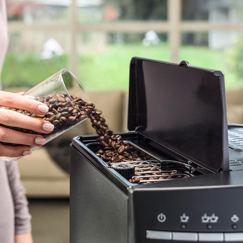Do zásobníka je možné vsypať ako mletú, tak zrnkovú kávu. Práve o zrnkovú sa prípadne postará moderný a veľmi tichý mlynček, ktorý dokáže namlet trinásť rôznych zrnitosťí pre správnu chuť nápoja. Zásobník je tiež vybavený novým vekom, ktoré uchová prirodzenú arómu aj pri dlhodobejšom uskladnenie kávy. Technológia Tubeless zaručuje, že každý hrnček je vždy pripravený z čerstvo namletej kávy a nezostáva nikde vo vnútornom vedení.