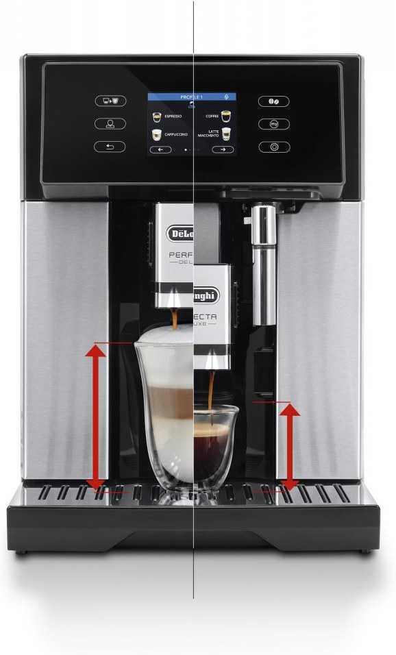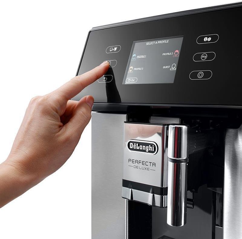 Perfecta Deluxe, stelesnenie kávovarov typu bean-to-cup od spoločnosti De'Longhi. Ľahko použiteľný farebný dotykový displej s technológiou Smart One Touch vždy poskytuje dokonalú šálku. Vy a vaša rodina si môžete prispôsobiť svoje obľúbené nápoje pomocou funkcie MY Menu. Vďaka štýlovému talianskemu dizajnu sa bude kovová a čierna povrchová úprava pýšiť svojím miestom v každej modernej kuchyni.