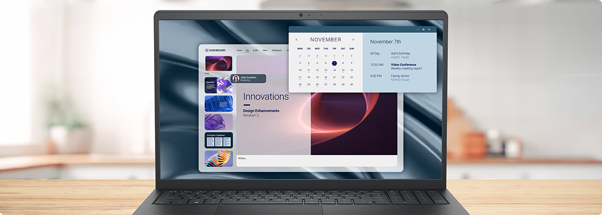 Vďaka HD webkamere budete na online stretnutiach pôsobiť vždy upravene a profesionálne. Inteligentný mikrofón s umelou inteligenciou redukuje okolité zvuky, takže je jasne počuť to najdôležitejšie - vás a vaše myšlienky. Dell ComfortView uľahčuje dlhé pracovné dni tým, že znižuje namáhanie očí. Pomáha vám udržať si komfort, sústredenie a produktivitu, aby ste sa mohli naplno venovať svojim prioritám.Premyslené detaily pre lepší zážitok