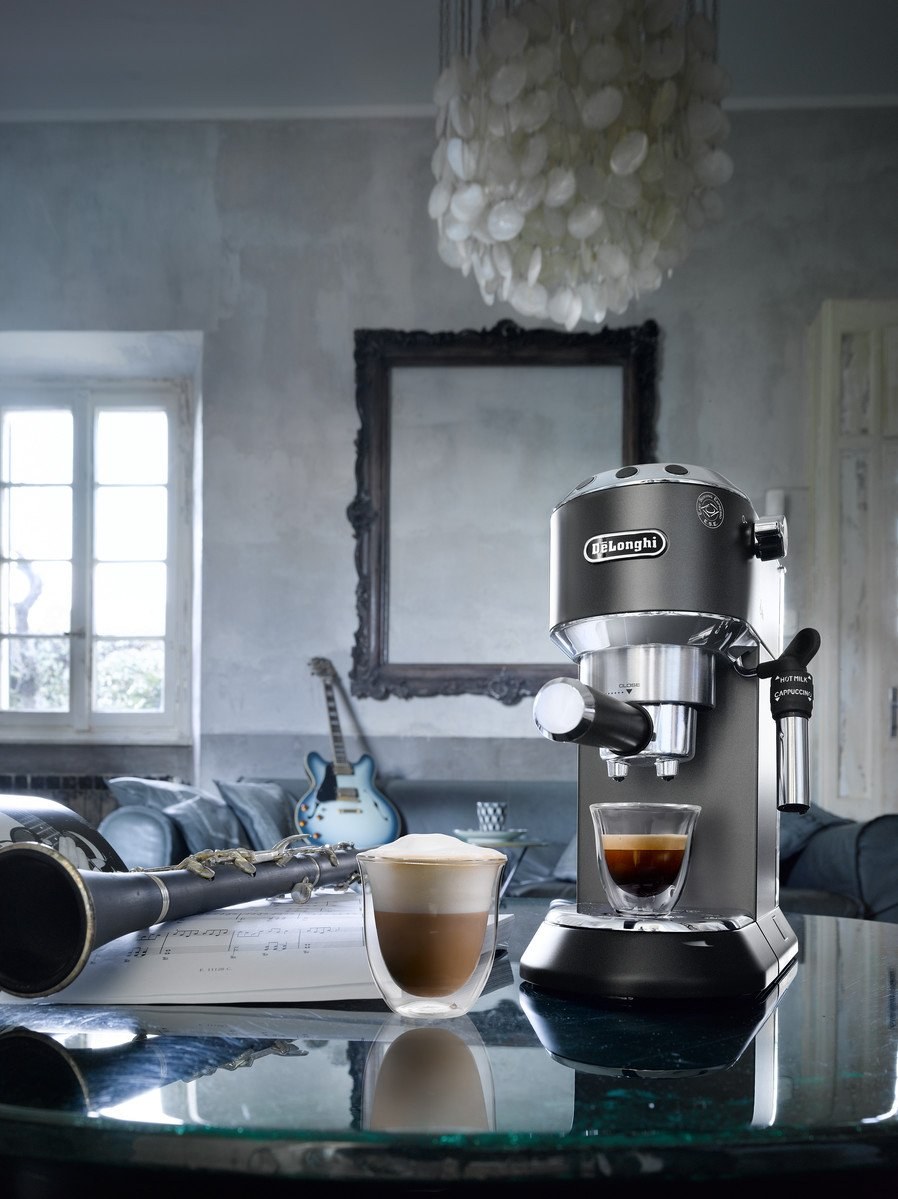 Pripravte si svoje obľúbené kávové nápoje doma pomocou inovatívnej technológie prípravy kávy. Vychutnajte si bohaté espresso – alebo si doprajte kávu so zamatovou vrstvou napeneného mlieka pripraveného pomocou nastaviteľného „Cappuccino systému“. Vďaka štýlovému matnému prevedeniu, dodá kávovar Dedica každej kuchyni nádych autentického talianskeho dizajnu.