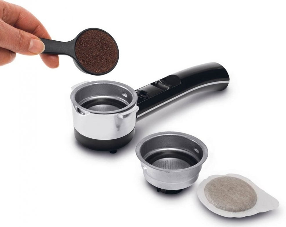 - tento kávovar je možné používať buď s mletou kávou (1 alebo 2 šálky) alebo s porciovanou kávou E.S.E pody