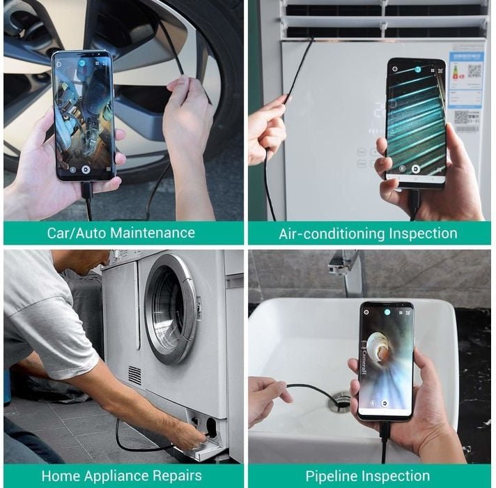 Inšpekčná kamera s ultratenkou sondou s priemerom 0,33 palca dokáže hladko skontrolovať všetky ťažko prístupné miesta. 5,0MP fotoaparát pomáha zhotovovať 2592*1944P superčisté fotografie a plynulé videá. Možno ju ľahko a rýchlo pripojiť k smartfónu so systémom Android, počítačmi so systémom Windows a počítačmi MacBook prostredníctvom adaptéra micro USB, USB a Type-C. Stačí si stiahnuť riadiacu aplikáciu a zobraziť si na obrazovke prenášaný obraz v reálnom čase. Pre lepší užívateľský zážitok a širšie použitie je sonda kamery vodotesná, čo znamená, že ju je možné kontrolovať aj pod vodou.