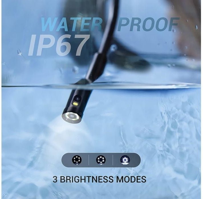 Kábel a sonda s kamerou sú navrhnuté s vodotesnosťou IP67, navyše s tromi úrovňami nastavenia jasu svetla, čo znamená, že endoskop môže vykonávať inšpekčné práce vo vlhkom alebo podvodnom prostredí.