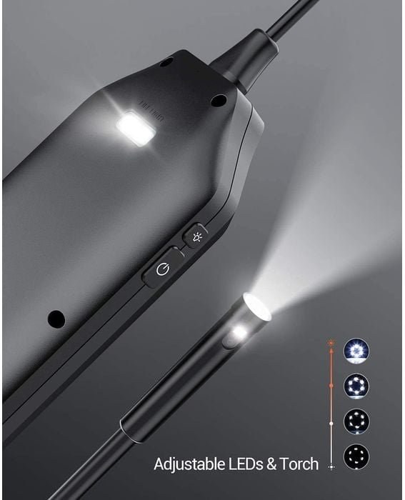Svietidlo na hlavnom tele a „6+1“ LED svetiel na hlavnej strane objektívu, ktoré sú na kamere adaptované, rozjasňujú tmu pri práci v noci alebo pri kontrole niektorých hlbokých a tmavých zákutí.