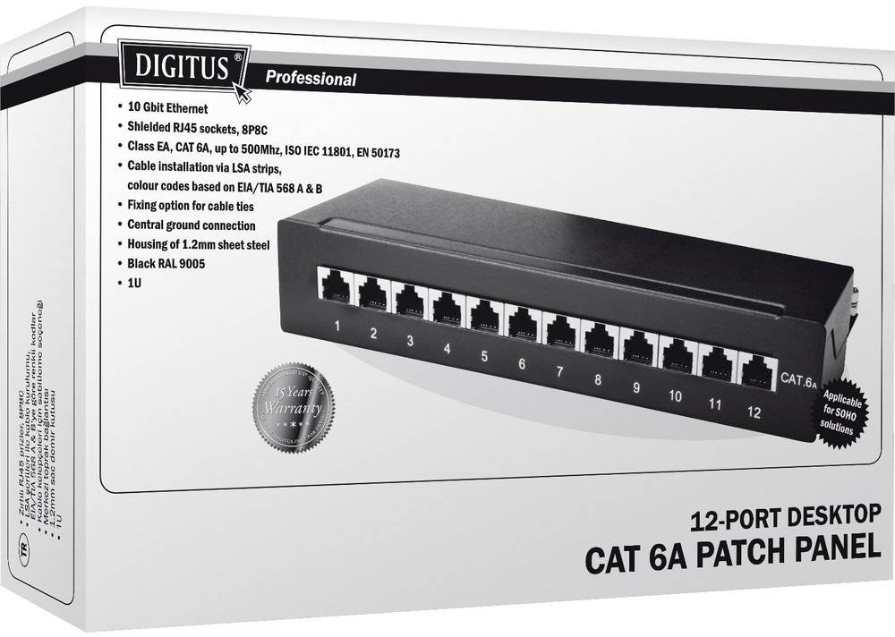 Digitus 10" patch panel 1U/12p, STP cat6a, čierny