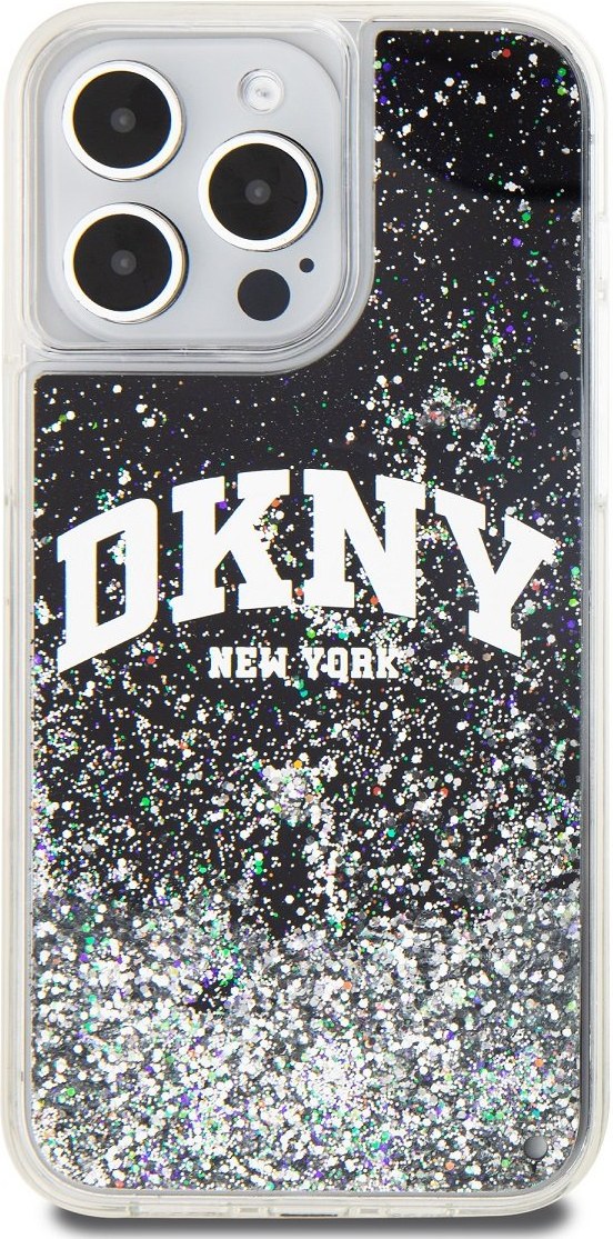DKNY Liquid Glitter Arch Logo kryt pre iPhone 12/12 Pro, čierny