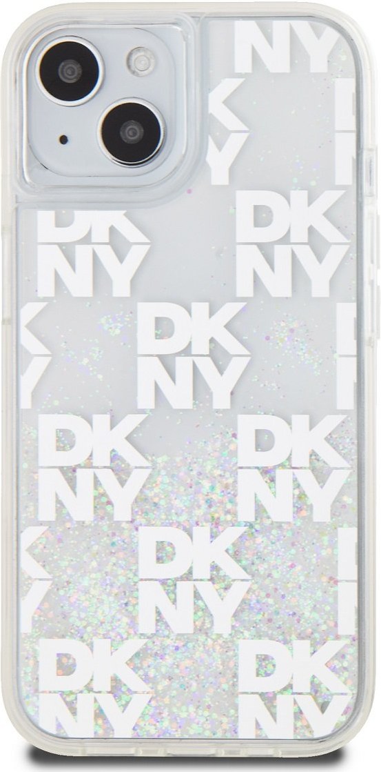 DKNY Liquid Glitter Checkered Pattern kryt pre iPhone 15, číry