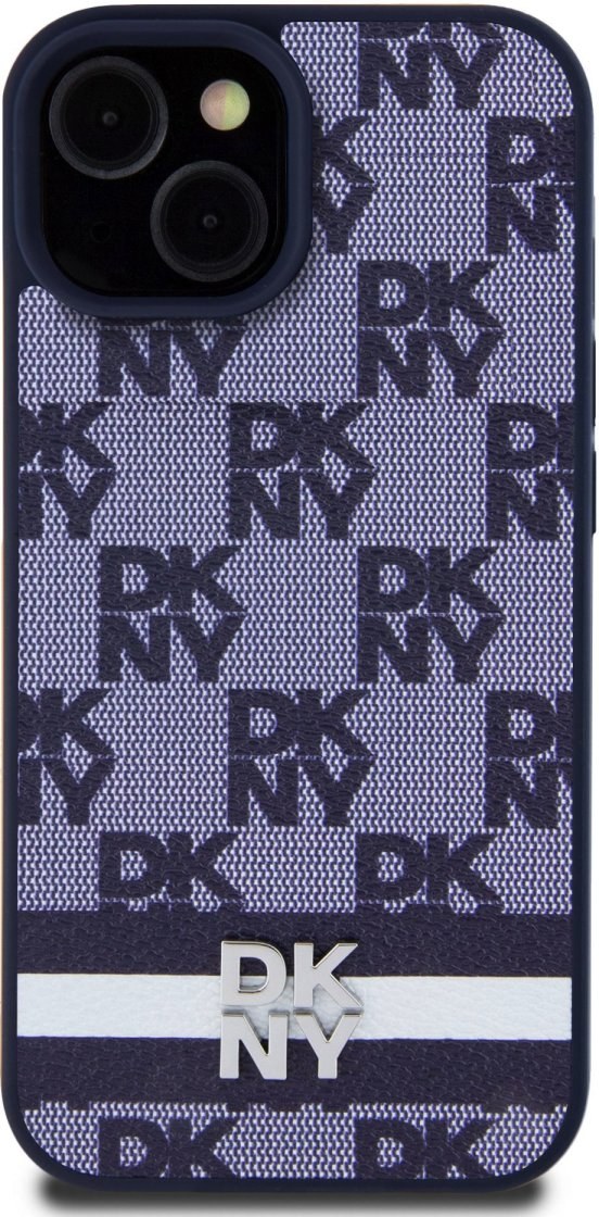 DKNY PU Leather Checkered Pattern and Stripe kryt pre iPhone 15, modrý