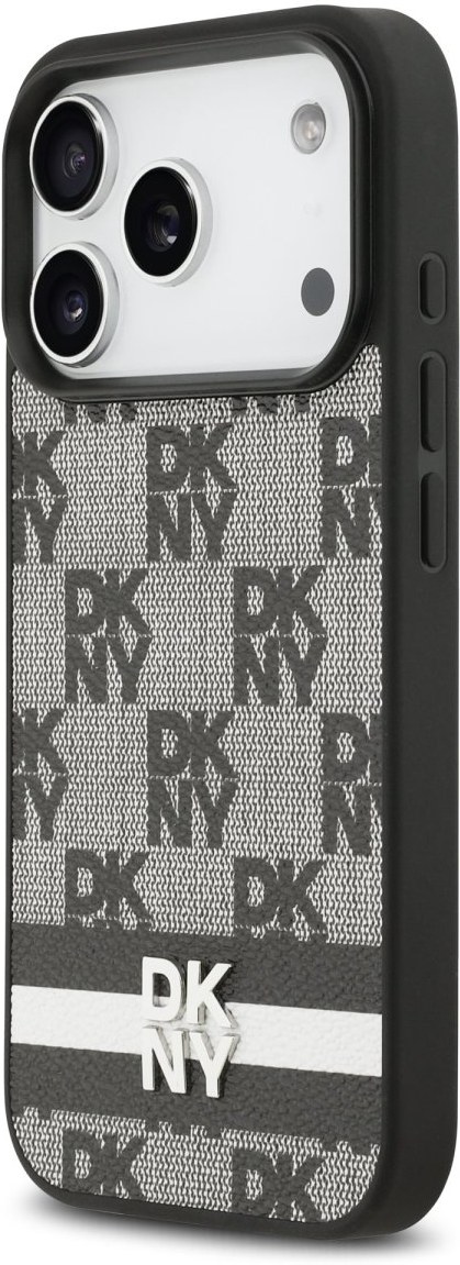DKNY PU Leather Checkered Pattern and Stripe kryt pre iPhone 17 Pro, čierny
