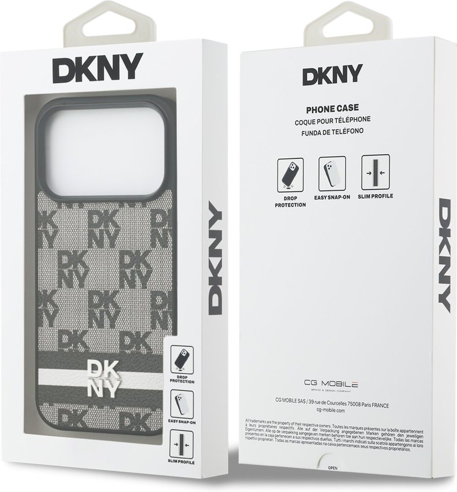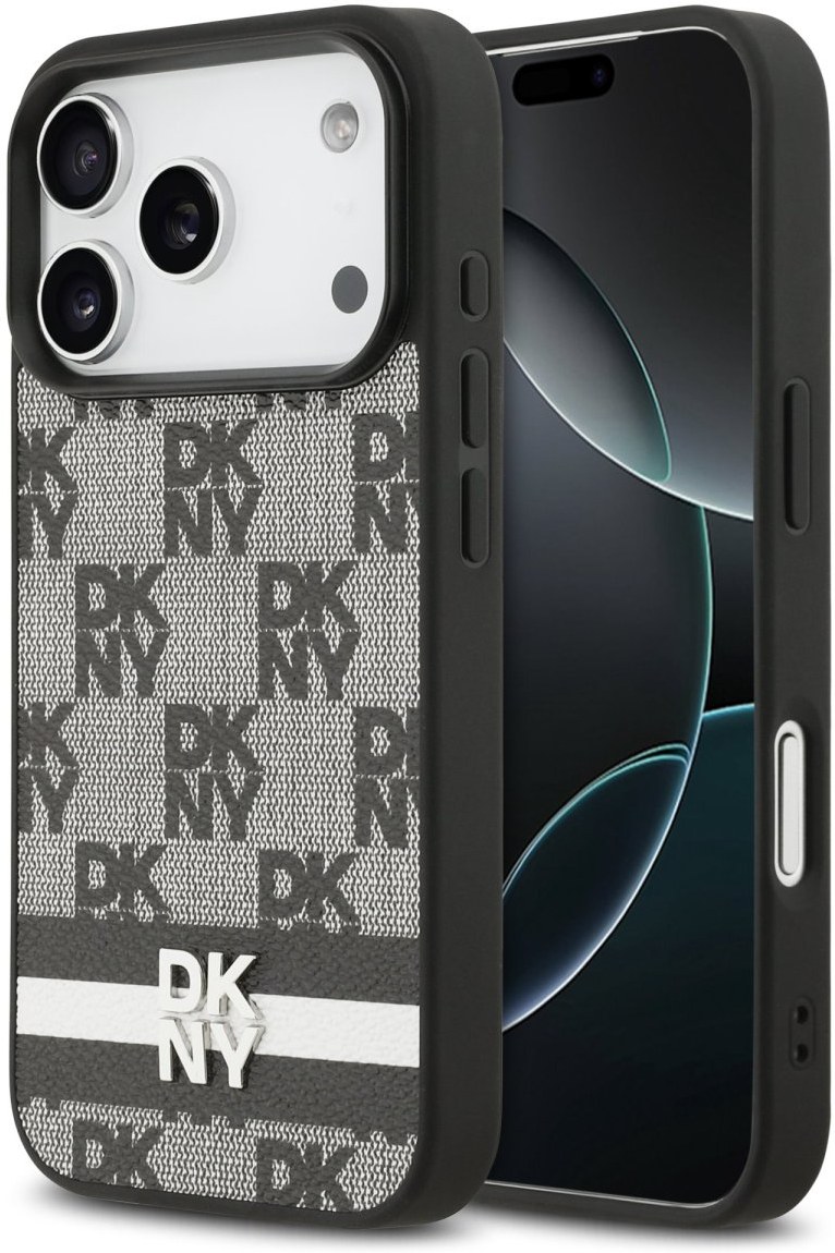 DKNY PU Leather Checkered Pattern and Stripe kryt pre iPhone 17 Pro