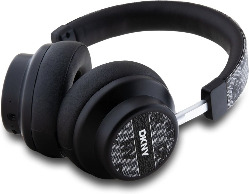 DKNY PU Leather Checkered Pattern bezdrôtové slúchadlá, čierne