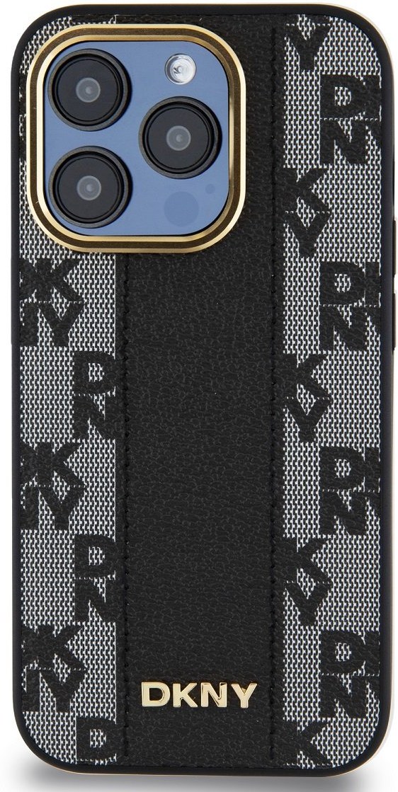 DKNY PU Leather Checkered Pattern Magsafe kryt pre iPhone 15 Pro, čierny