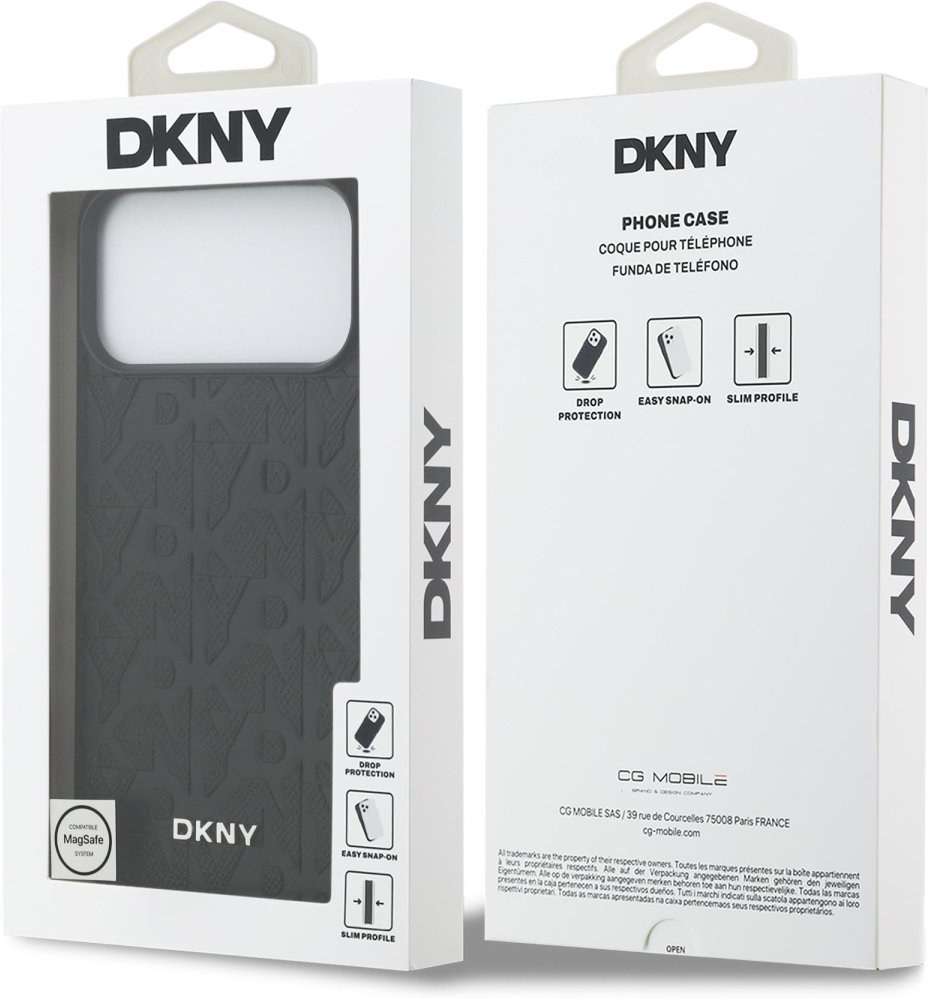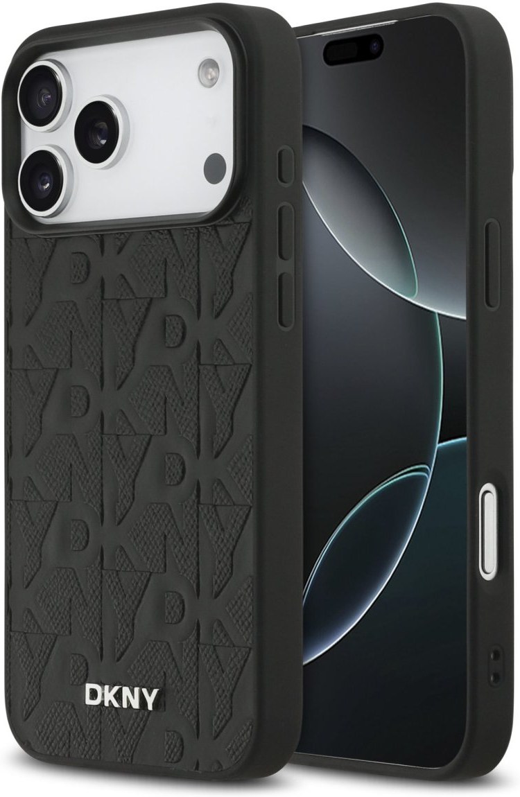 DKNY PU Leather Grid Pattern Magsafe kryt pre iPhone 17 Pro Max, čierny