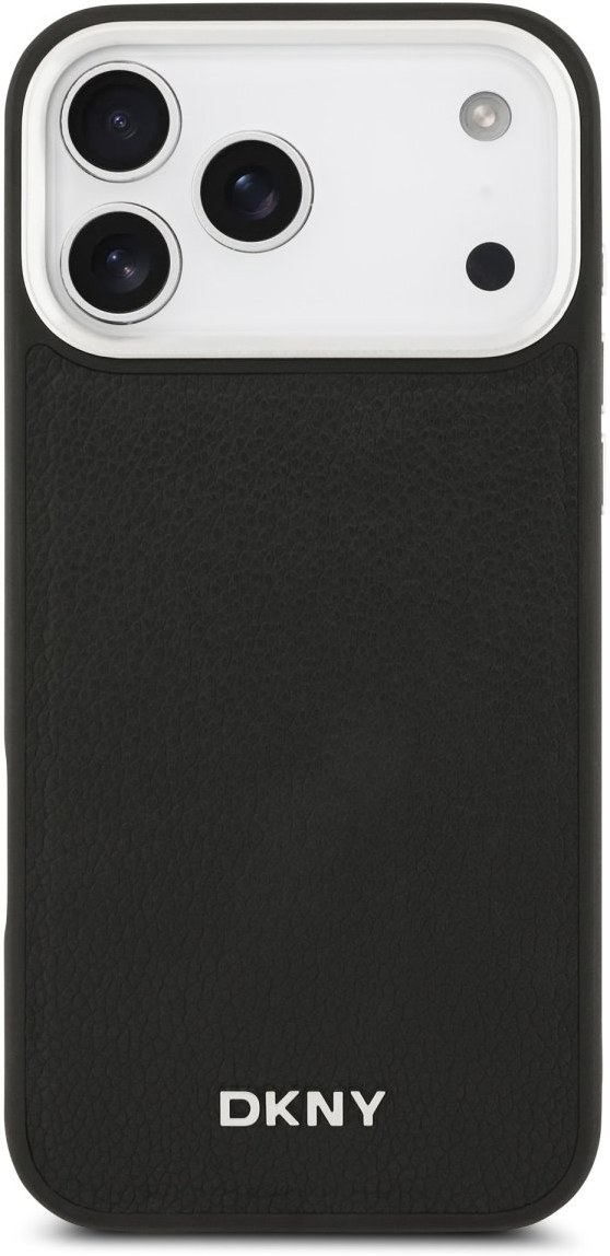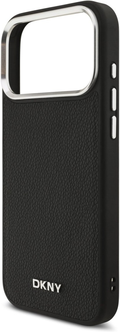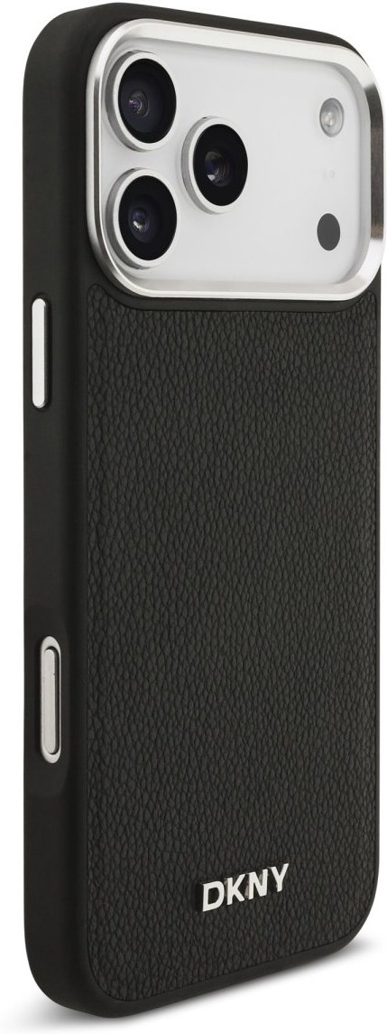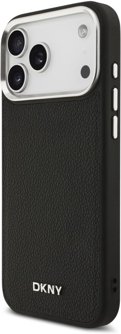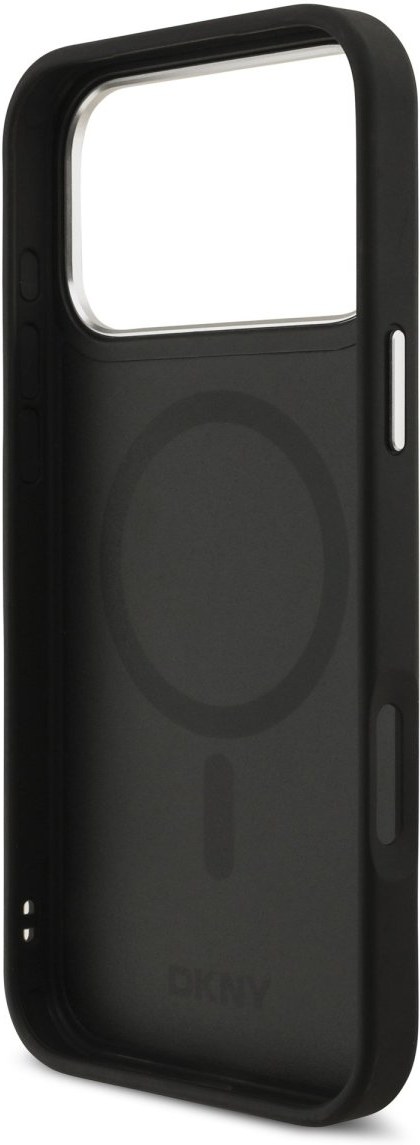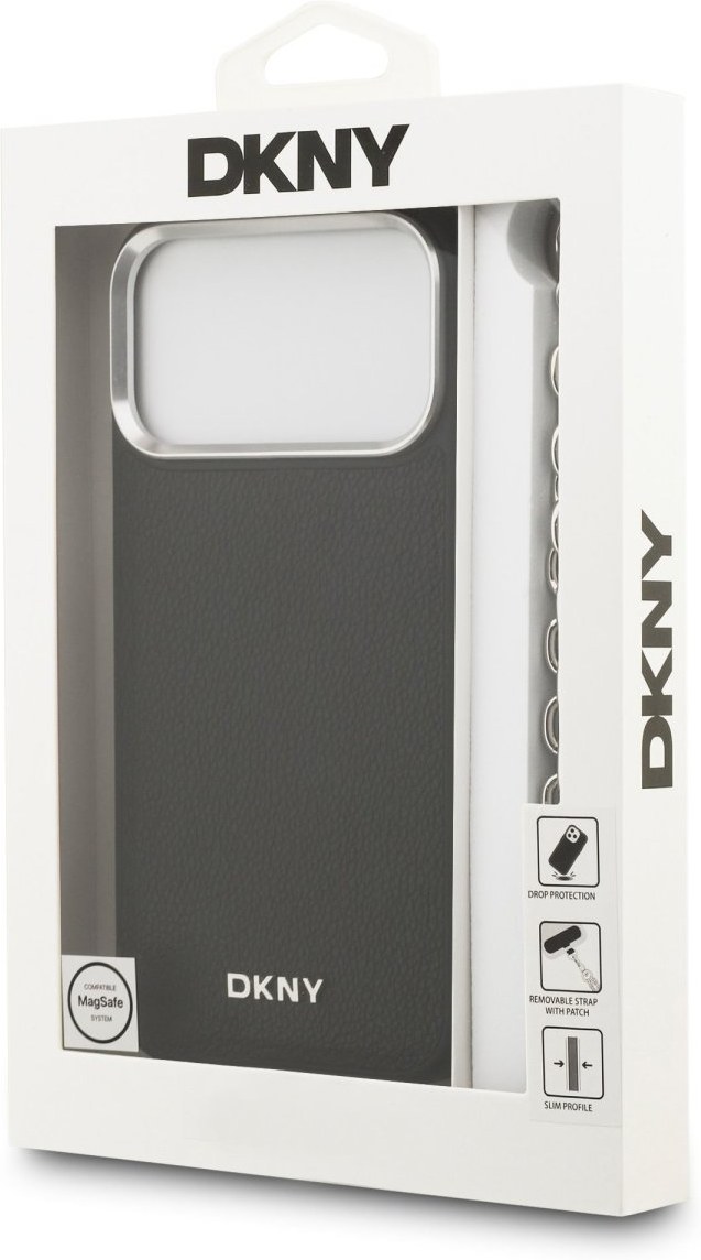 DKNY PU Leather Metal Logo Wrist Chain MagSafe kryt pre iPhone 17 Pro Max, čierny