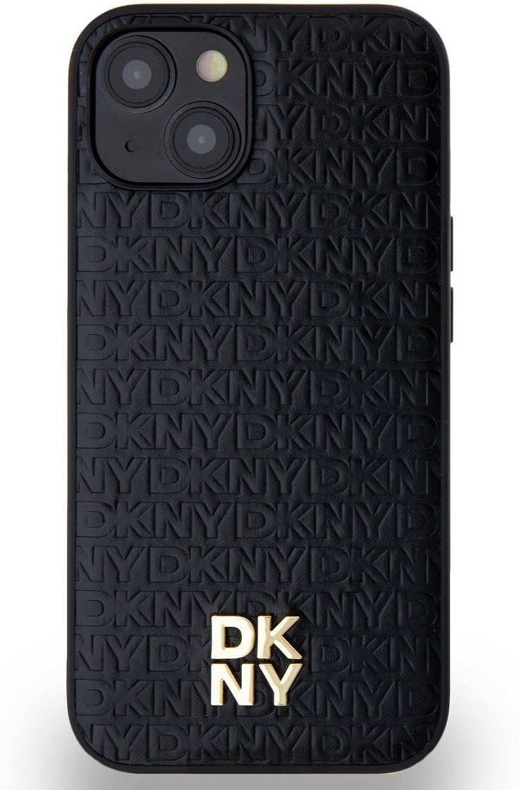 DKNY PU Leather Repeat Pattern Stack Logo Magsafe kryt pre iPhone 15, čierny