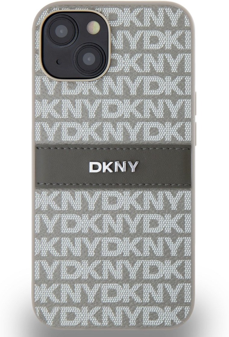 DKNY PU Leather Repeat Pattern Tonal Stripe kryt pre iPhone 14, béžový