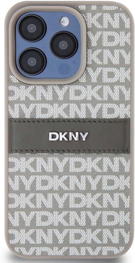 DKNY PU Leather Repeat Pattern Tonal Stripe kryt pre iPhone 14 Pro, béžový