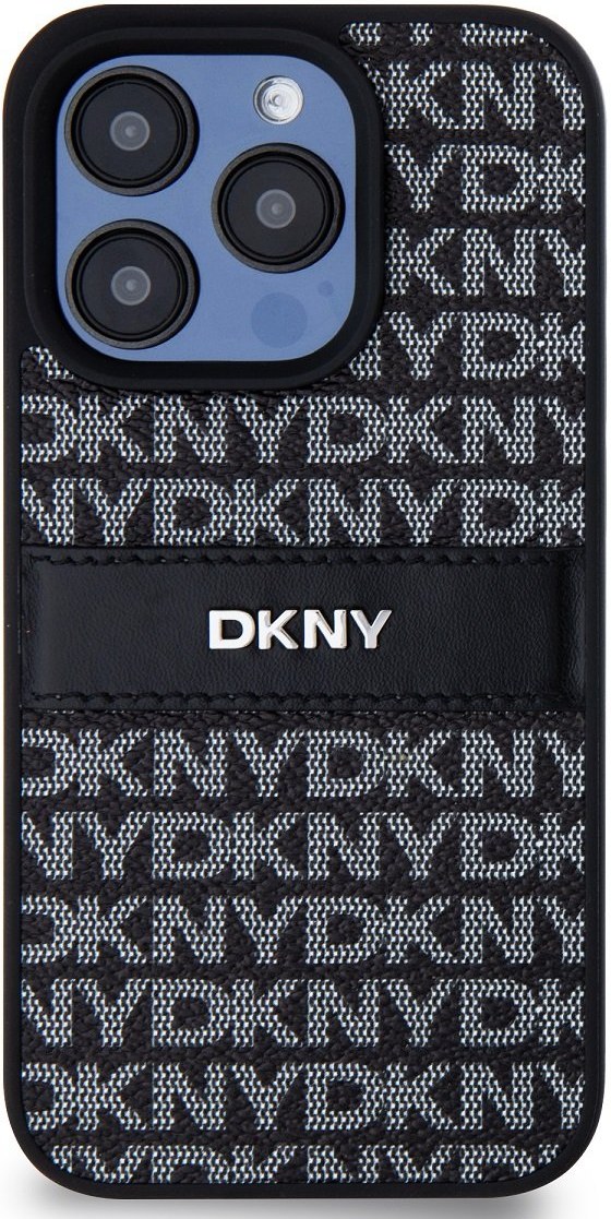 DKNY PU Leather Repeat Pattern Tonal Stripe kryt pre iPhone 14 Pro Max, čierny