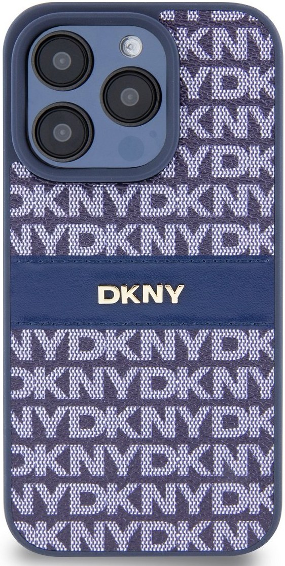 DKNY PU Leather Repeat Pattern Tonal Stripe kryt pre iPhone 14 Pro, modrý