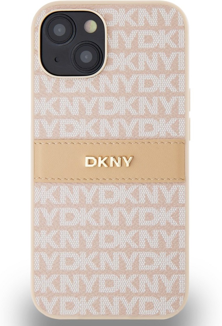 DKNY PU Leather Repeat Pattern Tonal Stripe kryt pre iPhone 14, ružový