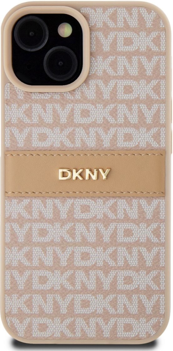 DKNY PU Leather Repeat Pattern Tonal Stripe kryt pre iPhone 15, ružový