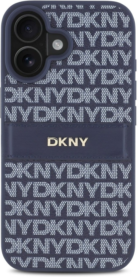 DKNY PU Leather Repeat Pattern Tonal Stripe kryt pre iPhone 16, modrý