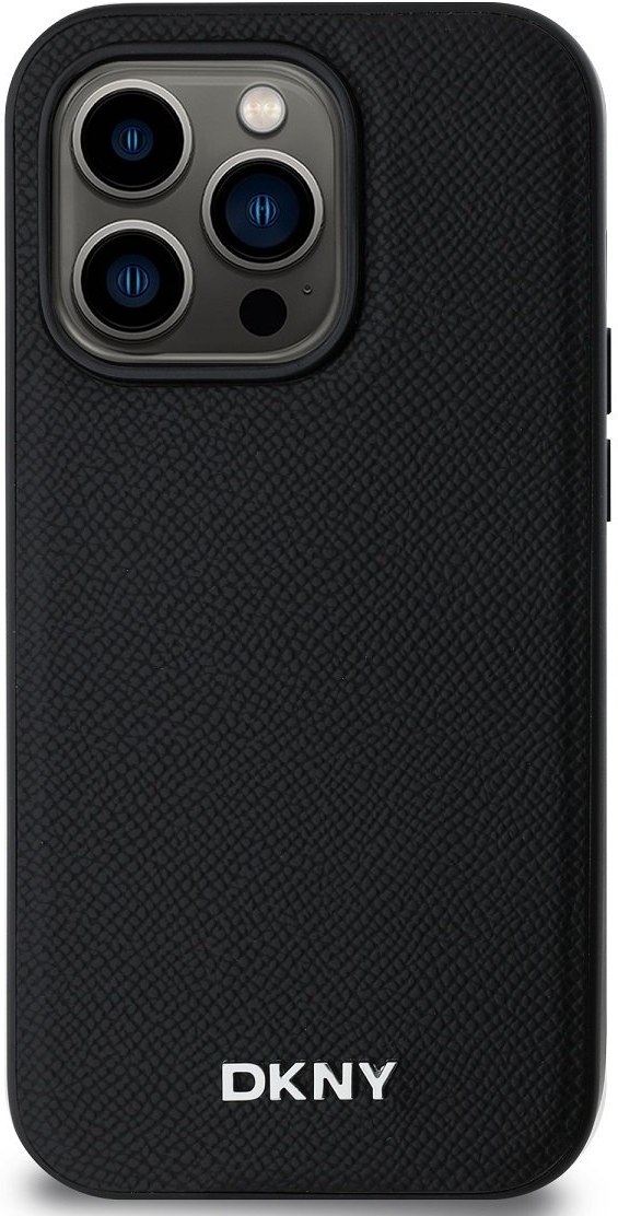 DKNY PU Leather Silver Metal Logo Magsafe kryt pre iPhone 14 Pro Max, čierny