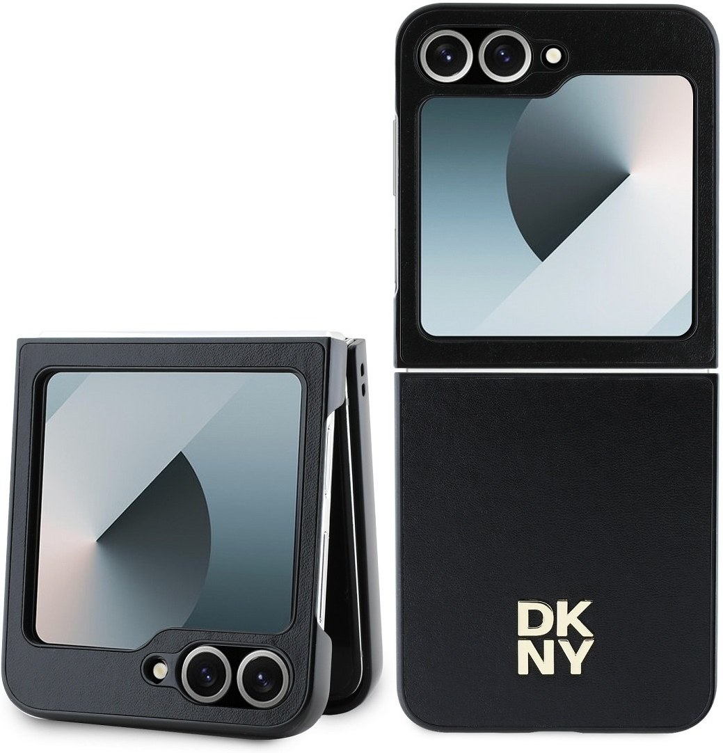 DKNY PU Leather Stack Logo kryt pre Samsung Galaxy Z Flip 6/7 FE, čierny