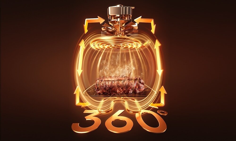 Vďaka inovatívnemu systému 360° Dual Source Cyclonic Heat už nemusíte jedlo v priebehu prípravy pracne obracať. Fritéza využíva duálny zdroj tepla (horný a spodný) v kombinácii s 11 lopatkami ventilátora s „hurricane“ dizajnom. Tento systém vytvára dynamické tepelné pole, ktoré rovnomerne obalí suroviny zo všetkých strán. Či už pripravujete celé kura alebo hrubé steaky, výsledok bude konzistentný a bez rizika pripálenia, o čo sa stará aj vysoko presný NTC termistor monitorujúci teplotu 5-krát za sekundu.