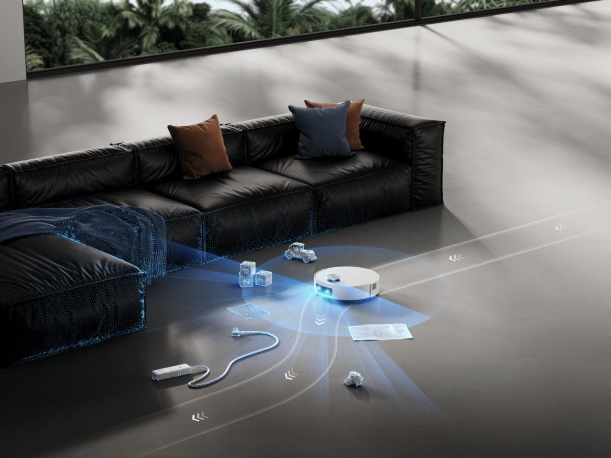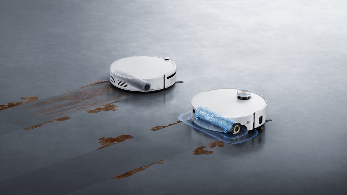 Valcový mop sa priebežne oplachuje horúcou vodou, čistí s vysokým tlakom a vďaka AI navigácii upratuje presne a bez námahy.