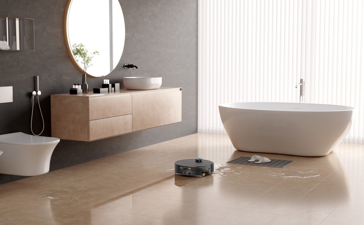 Pásový pohon prekoná aj vyššie prekážky, rozprašuje horúcu vodu na dôkladné čistenie a vďaka AI navigácii upratuje presne a bez námahy.