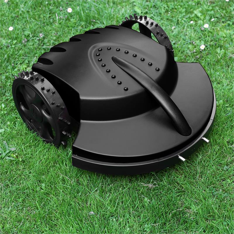 Robotizovaná kosačka je zabezpečená aj pred krádežou, pretože na spustenie je potrebný kľúč a pracuje výhradne s príslušnou základňovou stanicou.Duramaxx Garden Hero postupuje bez námahy dopredu po Vašej trávnatej ploche vďaka svojmu outdoorovému profilu na zadných kolesách. Ak začne pršať, vstavaný dažďový senzor zaručuje, že sa kosačka vráti priamo do nabíjacej stanice a počká na lepšie počasie. Kosenie trávnika ide teraz úplne samo: Jednoducho nechajte za Vás pracovať zariadenie Garden Hero.