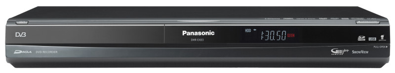 Panasonic HDD rekordér DIGA DMR-EX83EP-K,250GBDVD rekordér DIGA s digitálním i analogovým tunerem, nahrává a přehrává: HDD, DVD-RAM / DVD-R/-RW, DVD+R/+RW, DVD-R dvouvrstvé, DVD+R dvouvrstvé, vestavěný 250GB pevný disk - až 441 hod. záznamu, Deep Colour, rychlý start nahrávání za 1 sekundu (pouze na HDD a DVD-RAM) a EPG*, 5 režimů nahrávání, FR - flexibilní datový tok dle volné kapacity disku, 2x větší rozlišení při LP režimu (500 řádků), USB slot (MP3, WMA, JPEG, DivX), SD/SDHC slot pro paměťové karty (JPEG, MPEG2), připojení fotoaparátu a HDD/SD videokamery přes USB slot, funkce Jukebox - ukládání hudby z CD a USB na HDD, předinstalovaná data alb z databáze Gracenote, Progressive Scan - PAL/NTSC, VIERA Link - ovládání DVD rekordéru dálkovým ovladačem televizoru VIERA, Pause Live TV, Time Slip - libovolné přehrávání i při nahrávání, časový posun, editace nahrávek, české menu, DV in, HDMI výstup - konverze na 1080p, digitální optický výstup, DD, DTS, prohlížení fotografii s hudbou, snížená spotřeba el. energie v režimu Stand-by jen 0,3 W.