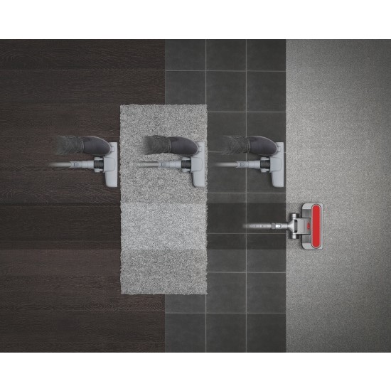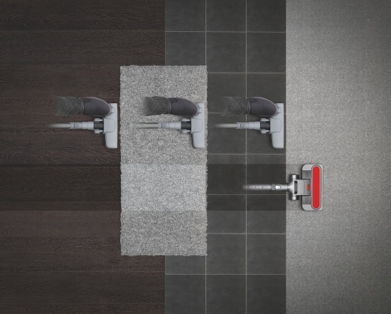 Sama sa automaticky nastaví pre optimálne utesnenie na každom typu podlahy. Nie je potreba ju meniť ani prepínať pri prechode z jedného typu podlahy na iný.