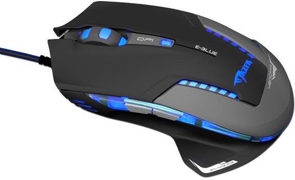 E-Blue Mazer Pro, optická, 6tl., 1 koliesko, drôtová (USB), čierna, 2500DPI, herná, PROMO