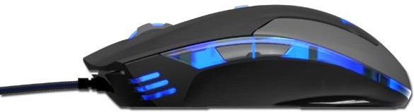 Na niekoľkých miestach myš vyžaruje tajomné modré LED svetlo, aby zvýšila svoju atraktivitu pre hráčov. Podsvietené je logo Mazer v dolnej časti tela myši, efektné detaily okolo neho, DPI prepínač a pogumované scrollovacie koliesko.