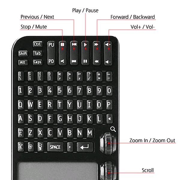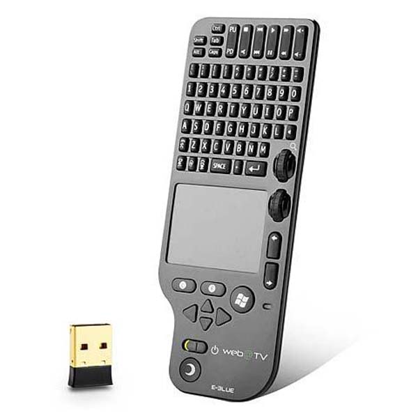 Ak sa vám zdá monitor počítača príliš malý a pracovať s klavesnicou na kolenách nepohodlné práve web@tv ovládač je ideálnou pomôckou pre vás. Bezdrôtový diaľkový ovládač s integrovanou klávesnicou a touchpadom. Má zabudovanú kompletnú klávesnicu so šípkami vpred/vzad, touchpad s pravým a ľavým tlačidlom, umožňuje režim spánku, ovládanie hlasitosti,zoomovanie a posúvanie obsahu.