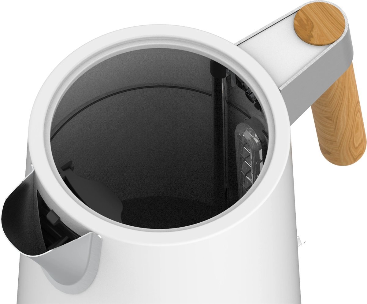 Kúpte si rýchlovarnú kanvicu ECG RK 1768 Strix Timber a získate nielen spoľahlivého pomocníka na každodennú prípravu čaju a kávy, ale aj vkusnú ozdobu kuchyne. Tento malý spotrebič sme totiž navrhli tak, aby vás zaujal hneď na prvý pohľad – opatrili sme ho bielou povrchovou úpravou z antikora a jeho atraktívny vzhľad sme ešte podčiarkli štýlovými drevenými prvkami.