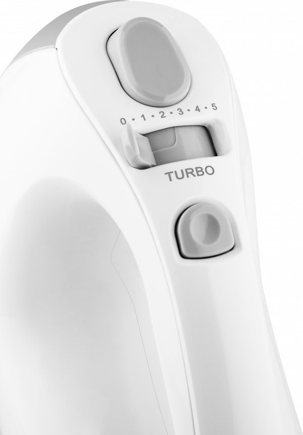 Využiť môžete 5 nastavení rýchlosti. Vďaka otočnému prepínaču je možné rýchlosti plynulo regulovať jedným prstom. Veľmi príjemným bonusom je tlačidlo TURBO, ktorým aktivujete funkciu Turbo Boost a prepnete rýchlosť na maximum. Túto funkciu využijete napríklad pri šľahaní bielkov či šľahačky.