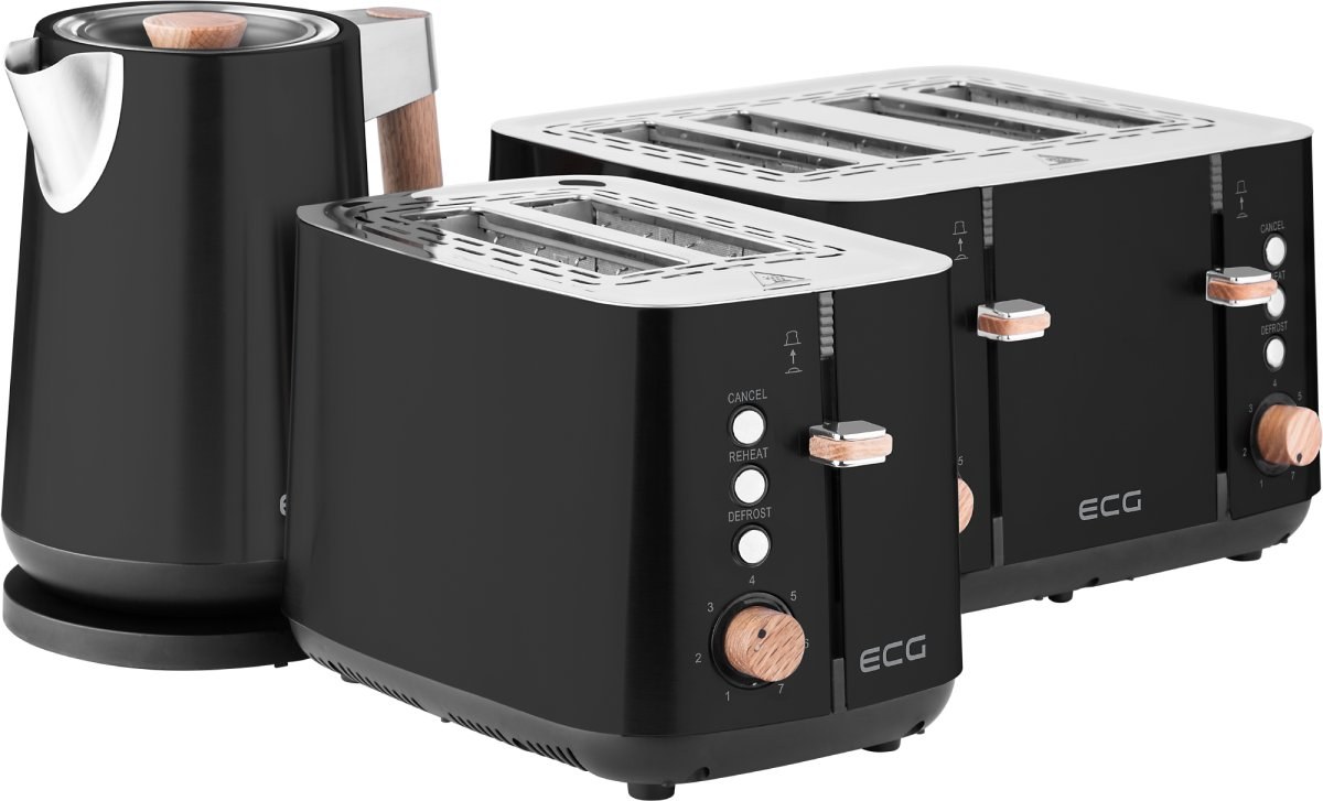 Popri tomto praktickom pomocníkovi je súčasťou radu ECG Timber Series aj väčší hriankovač (s priehradkami na 4 hrianky) a tiež rýchlovarná kanvica. Všetky zmienené spotrebiče pritom disponujú jednotným dizajnom, takže sa dajú v kuchyni krásne skombinovať. K dispozícii sú v dvoch farebných variantoch – štýlové drevené prvky sú skombinované buď s bielou, petrol farbou, klasickým či čiernym antikorom. Vyberte si dizajn, ktorý ladí s vaším vkusom, a zostavte si doma raňajkovú súpravu presne podľa svojho gusta.