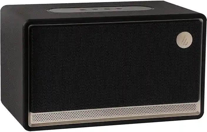 Drevená 15 mm MDF skrinka v retro štýle znižuje rezonancie a dodáva nadčasový vzhľad. Textilný poťah a čistý dizajn pôsobia elegantne, zatiaľ čo trojrežimové ambientné podsvietenie dotvára atmosféru podľa nálady.