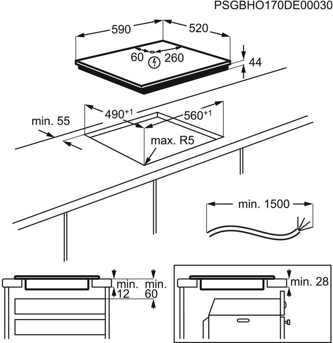 Výkon- Rozmery pre zabudovanie VxŠxH (mm): 44x560x490