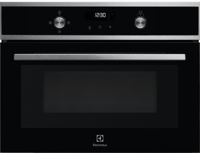 Rúra vstavaná kompaktná; Electrolux Intuit 600 FLEX Quick & Grill EVK6E40X; Šírka (cm): 46; En.trieda: Nie je; Technológia: Quick & Grill;Samočistenie: Žiadne; Vnútorný objem čistý (l): 46; Ovládanie: Zasúvacie ovládače, LED displej; Teleskopické výsuvy: Nie; Teplotná sonda: Nie;