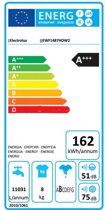 Spotreba energie - bavlna 60 ° C: 0.9 kWh