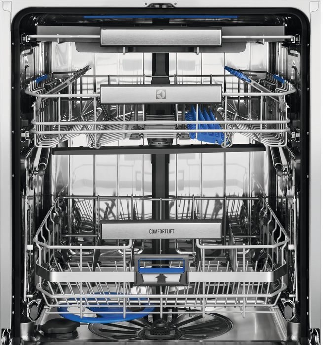 - Dolný košík s: 4 foldable plate racks Comfort Lift®, antikorová rukoväť