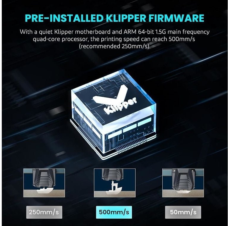 3D tlačiareň, tlačový priestor 225 x 225 x 265 mm, tlačový materiál PLA, ABS, TPU, nylon, rýchlosť tlače až 500 mm/sZobraziť viac