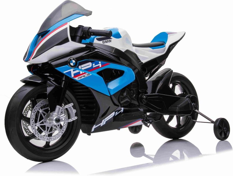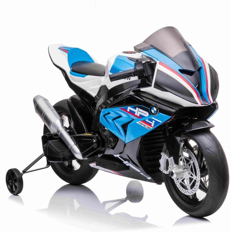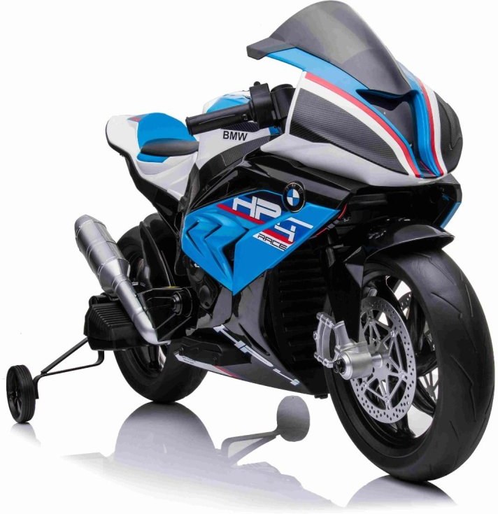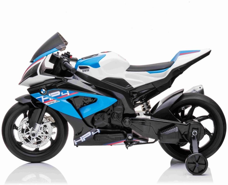 Úžasná licencovaná elektrická motorka BMW HP4 RACE 12VS realistickým vypracovaním a odnímateľnými pomocnými kolieskami.
