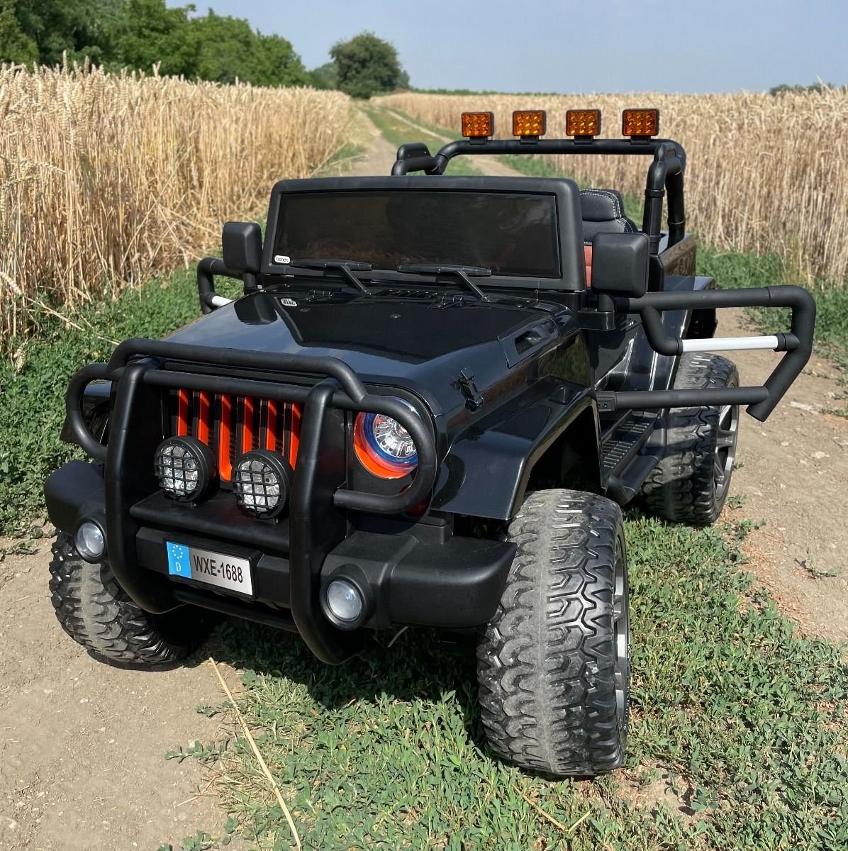 Pohon 4X4 s vysokým podvozkom - Pohon zabezpečujú 4 X 45W motory na zadných kolesách, vďaka čomu je autíčko vhodné aj do mierneho terénu. Autíčko je plne odpružené aj na prednej a zadnej náprave.
